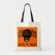 Une araignée noire éffrayante avec huit jambes poilues, des yeux jaunes avec de grands élèves noirs et sa bouche ouverte montrant ses crocs sur un tour d'Halloween ou un sac friandise. Cette conception est disponible sur plusieurs types différents de sac, y compris organique et impulsion. Certains styles de sac sont également disponibles en différentes couleurs.