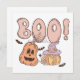 Boo ! Halloween Boo design parfait pour toute personne célébrant la saison d'Halloween, dispose de texte rose qui lit BOO et a un citrouille, sorcier casquette, Jack-o'-lantern, toile d'araignée, et chauves-souris!