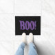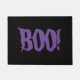 Tapis de porte d'Halloween avec un Boo éffrayant ! imprimer sur un arrière - plan noir. Customisez ce tapis ou achetez tel quel.
