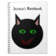 Ce magnifique carnet personnalisable est composé d'un chat noir aux oreilles pointues, d'yeux vert vif et d'un grain rouge sourd. Ce chaton déplaisant est parfait pour Halloween ou pour les amoureux de les chats.Il y a du texte personnalisable en haut du carnet qui vous permet de le personnaliser pour vous-même ou de le donner en cadeau.