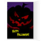 Citrouille très effrayant avec une chouette dans un arbre au-dessus. Un arrière - plan de nuit bleu profond moody. Design très amusant et effrayant pour votre carte de voeux Halloween.