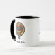 badge de crête d'Halloween avec chauve-souris volante entourée d'une sangle et boucle sur l'arrière - plan tartan. Texte personnalisé des deux côtés.