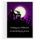 La Faucheuse Grim dans une cour grave avec une pleine lune et un arrière - plan de ciel violet. Design très amusant et effrayant pour votre design de carte de voeux Halloween.