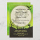 Faire-part de mariage d'Halloween avec la lune, le cimetière, et les chauves-souris au-dessus d'un ciel de nuit très vert. Célébrez votre Halloween en style avec cette magnifique invitation d'Halloween déplaisante mais classe!