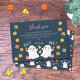 Carte de remerciements bleu foncé mignonne à envoyer à vos invités de baby shower pour leur faire savoir que vous êtes reconnaissants qu'ils ont fait partie de votre célébration d'arrivée des bébés. Celui-ci est conçu pour suivre le thème du petit fantôme. © ArianeC Illustrations-Tous droits réservés