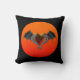 Halloween Goth Orange Heart & Bat Wings Coussin