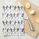 Serviette de cuisine en blanc avec imprimé squelettes dansants d'Halloween.