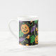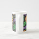 jolie porcelaine, bonne dimension effet brillant bien dans l'ensemble. Le motif et les couleurs sont réussis.Je trouve néanmoins dommage de ne pas occuper tout l'espace avc le motif car la partie rouge au dos de la tasse est trop présente et pas intéressante visuellement.
