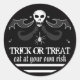 Halloween Étiquette crâne noir et blanc Trick ou Traitements Étiquette - Mangez à vos propres risques (ou personnaliser avec votre propre texte)