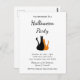 Invitation de fête d'Halloween, avec un joli chat noir et orange et design typographique. Avec des lettres personnalisables en noir, vous pouvez ajouter vos propres informations. Idéal pour planifier un automne amusant ou une fête costumée.
