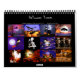 Profitez de l'esprit d'Halloween toute l'année avec ce calendrier de 12 de mes oeuvres numériques originales de personnages d'Halloween, y compris un squelette mangeant des bonbons, des fantômes drôles, une sorcière avec un téléphone portable, des chauves-souris mignonnes, des citrouilles riants et des squelettes jouant de la guitare.