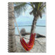 Photo d'un hamac tendu entre deux palmiers sur une plage des Caraïbes.