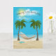 Hamac accroché entre deux palmiers avec étoiles de mer et tongs sur la plage de sable avec nuages d'été pour 57ème anniversaire. L'âge peut être changé.