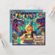 Hamish célèbre son anniversaire. Le Greeting sur la carte est Happy Birthday Hamish". Sur le dos de la carte se trouve une petite version de la même image, avec beaucoup de place pour écrire un message. Fabriqué avec l'aide d'AI Bing (CoPilot).