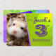 C'est votre carte d'invitation de hamster d'anniversaire. Conception avec un hamster blanc et marron. L'arrière - plan est un design géométrique violet et coloré. Le dos est décoré de ballons colorés flottant vers le ciel sur des formes géométriques bleues. Ici, vous pouvez également mettre en détail des informations sur la fête : nom, lieu, date, heure, etc.