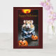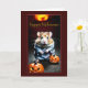 Cette adorable carte d'Halloween présente un hamster irrésistiblement mignon habillé d'un minuscule costume fantôme, apportant une touche de douceur à la saison éffrayante. Le hamster, avec ses yeux brillants et son minuscule nez rose, se dresse joyeusement parmi une paire de citrouilles sculptés aux visages brillants, ajoutant une ambiance d'Halloween ludique à la scène. L'arrière - plan sombre donne une touche chaleureuse aux citrouilles, créant une ambiance cosy et festive. Cette carte est parfaite pour ceux qui aiment le côté plus léger et plus fantaisiste d'Halloween. C’est un choix idéal pour envoyer des souhaits d’Halloween gaies à des amis, à des familles et à des êtres chers, en particulier ceux qui ont un point doux pour les créatures mignonnes et câlées.