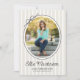 This modern graduation party invitation highlights an oval photo framed by a simple black border and finished with a charming hand-drawn bow. The design is set against a backdrop of soft light tan vertical stripes, creating a fresh and classic look. The backside offers space for a second photo and custom text for your party invite details.