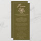 A colorful retro funky modern grasslands green and sweat cream floral wedding dinner menu. Which features chic template design of boho vintage green background on the front and back. With cream whimsical typography and hand drawn floral bouquet. Perfect and matching with the whole suite.