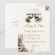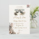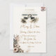 Hand drawn wedding invitation with a picture of couple wedding ceremony on the beach. On the corners of the card is a wedding bell in pink colour and flowers to make it romantic. The card has a watercolor effect. Customise the wedding invitation card with your messages.