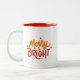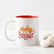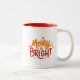 Start your morning on a cheerful note with this Merry & Bright two-tone coffee mug, featuring warm, original hand-lettered typography in red and orange tones. It is perfect for cozy winter mornings, festive décor, or thoughtful Christmas gifts.