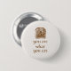This pinback button showcases original hand-drawn lettering alongside a stamp-style illustration of artisan bread.