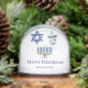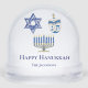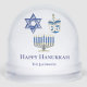 Personnalisé Blue & White Happy Hanoukka Snow Globe Happy Hanoukka avec Star of David, Dreidel & Hanoukka bougies