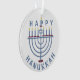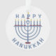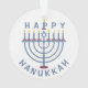Ces ornements assez doubles faces ont un menorah et les mots "Hanoukka heureux." Voyez les invitations assorties de partie ici : https://www.zazzle.com/hanukkah_party_funny_whole_latke_fun_invitation-256781977102628379