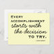 Motiver et inspirer. Chaque accomplissement commence par la décision d'essayer. Une carte postale pour motiver, encourager et remettre en question.