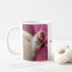 Give the feelings of trust, unconditional love, home, peace, and comfort with this customizable “Happiness is a warm cat in your lap” cat coffee mug!