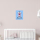 Joyeux petit bébé rose portant des chaussettes bleues. Affiche amusante pour décorer la chambre de votre bébé. Personnalisez avec le nom de votre bébé. Dessin de Taylor Addams.