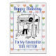 Cette carte d'anniversaire,personnalisée par mes soins et réalisée par Zazzle,est parfaitement conforme à mes attentes.