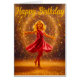 Happy Birthday with young dancing girl and glitter