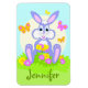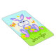 Un joli lapin de dessin animé avec des amis papillons brillants et des fleurs colorées. Vous pouvez personnaliser cet aimant avec le nom de votre enfant ou tout autre texte comme vous le souhaitez. Utilisez la fonction "personnaliser" pour modifier la taille, la couleur ou le style de la police si vous le souhaitez. Bonne journée !