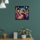 Happy cat célébrant Noël tuxedo affiches de chat Ce dessin animal adorable montre un chat tuxedo dans de belles couleurs vives. En plus de ce merveilleux chat, il y a des ballons, des arbres de vacances et toutes les décorations, ainsi que des feux d'artifice. Fait un grand anniversaire, Noël, ou un autre cadeau pour un amoureux des chats!