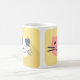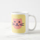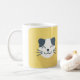 Une tasse classique en céramique avec un graphique simple et mignon du visage d'un chat heureux. Le design montre une tête de chat blanche avec des taches gris foncé, une bouche souriante, et des murmures, dressés contre un arrière - plan jaune doux. Cette tasse est parfaite pour le café, le thé ou toute boisson chaude, apportant une touche de gaieté à votre routine matinale
