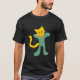 Cette chemise présente un chat en pyjama turquoise et un sourire éclatant.