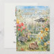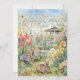 This greeting card showcases a watercolor illustration of a spring flower garden, gazebo, and two rabbits. It includes a sophisticated gold holiday greeting. The flat holiday card features an Easter message on the reverse, along with a signature line for personalization. Specifically designed for family use, this Easter card allows for customized text. This versatile template image can be applied to other products as well.