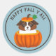 Bonne Chute, tous ! Cet autocollant présente un adorable chiot berger australien dans un citrouille disant "Happy Fall Y'all" mais vous pouvez customiser l'aimant en remplaçant le message par votre propre message ou nom (par exemple, Hello Citrouille).