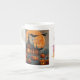 jolie porcelaine, bonne dimension effet brillant bien dans l'ensemble. Le motif et les couleurs sont réussis.Je trouve néanmoins dommage de ne pas occuper tout l'espace avc le motif car la partie rouge au dos de la tasse est trop présente et pas intéressante visuellement.