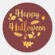 Ces autocollants ronds présentent un message "Happy Halloween" avec des illustrations de feuilles et de glands d'automne et d'automne. Leur forme ronde les rend parfaits pour l'utilisation comme scellés d'enveloppe lors de l'envoi de cartes Halloween.