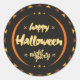 Happy Halloween Party sticker. Touche de finition parfaite pour sceller vos cartes de voeux, invitations ou de fermeture de papier ou de traiter des sacs. Vous pouvez vous attacher avec un ruban à une bouteille de vin. Vous pouvez modifier le texte en fonction de vos besoins. S'il vous plaît visitez mon magasin pour plus d'boucles d'oreilles d'Halloween, invitations, timbres, cartes, autocollants et plus. http://www.zazzle.com/shabnamahsandesigns/products?dp=0&cg=196097623251393875 Merci de visiter mon magasin! Jetez un oeil à certaines autres choses que je fais, s'il vous plaît. Chez shabnamahsandesigns, nous savons que votre temps est l'un de vos atouts les plus précieux et vous apprécions de passer un peu de votre temps avec nous. Bonne journée !