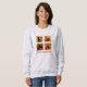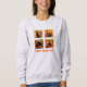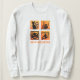 Restez au chaud et célébrez l'halloween avec ce sweatshirt unique avec quatre images d'halloween traditionnelles sur une chemise ; un chat noir, le squelette d'une main, le visage citrouille effrayant et une sorcière sur son balai. Parfait comme un cadeau, une fête d'halloween, un tour ou un régal.