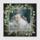 This Happy Holidays Photo Wreath Greenery Square Magnetic Christmas Card features a photo of your choice surrounded by holly with berries, pine branches, pinecones, and eucalyptus, with your names and year.