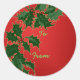 Ces autocollants d'étiquette-cadeau de vacances ont des Feuilles et des baies de Noël sur un arrière - plan rouge vif. Très festif !