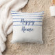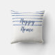 Cushion présente des rayures bleues en arrière - plan blanc. Customisez le texte avec le vôtre.