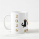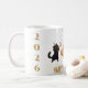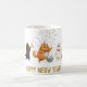 Celebrate the New Year with this adorable and funny mug featuring three party-ready cats! This design showcases a black cat blowing a party horn, a playful orange tabby dancing next to a disco ball, and a fluffy white cat holding a champagne glass, all wearing festive party hats. The phrase "HAPPY MEOW YEAR!" is written in sparkling gold text with celebratory confetti falling around them. It's the perfect gift for any cat lover to start the new year right, or a great way to enjoy your coffee or tea on New Year's morning. The crisp white background ensures the vibrant, playful design stands out.