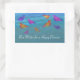 Illustration graphique d'oiseaux colorés dans le ciel au-dessus de l'océan.