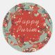 Chag Purim Sameach !. Happy sticker Purim avec la couronne feuilletée sur rouge.. Le texte peut être customisé ou supprimé.