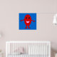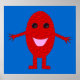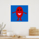 Caricature d'un raisin rouge souriant aux yeux noirs brillants et d'une bouche rose debout contre un arrière - plan bleu avec ses bras ouverts large. C'est une affiche colorée vibrante qui devrait vous faire sourire.
