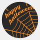Happy Stickers Halloween avec Spider Web dans les couleurs Halloween orange et noir. Les autocollants d'Halloween font de grandes astuces ou des cadeaux, et sont amusants pour décorer tous vos projets d'Halloween. <br>Voir tous nos autocollants Halloween dans notre boutique au ()! <a href="http://www.zazzle.com/stickermad/products?dp=0&cg=196880420703973077</a>Copyright Scarribaby Design, une marque déposée, et soutenu par la garantie Zazzle.